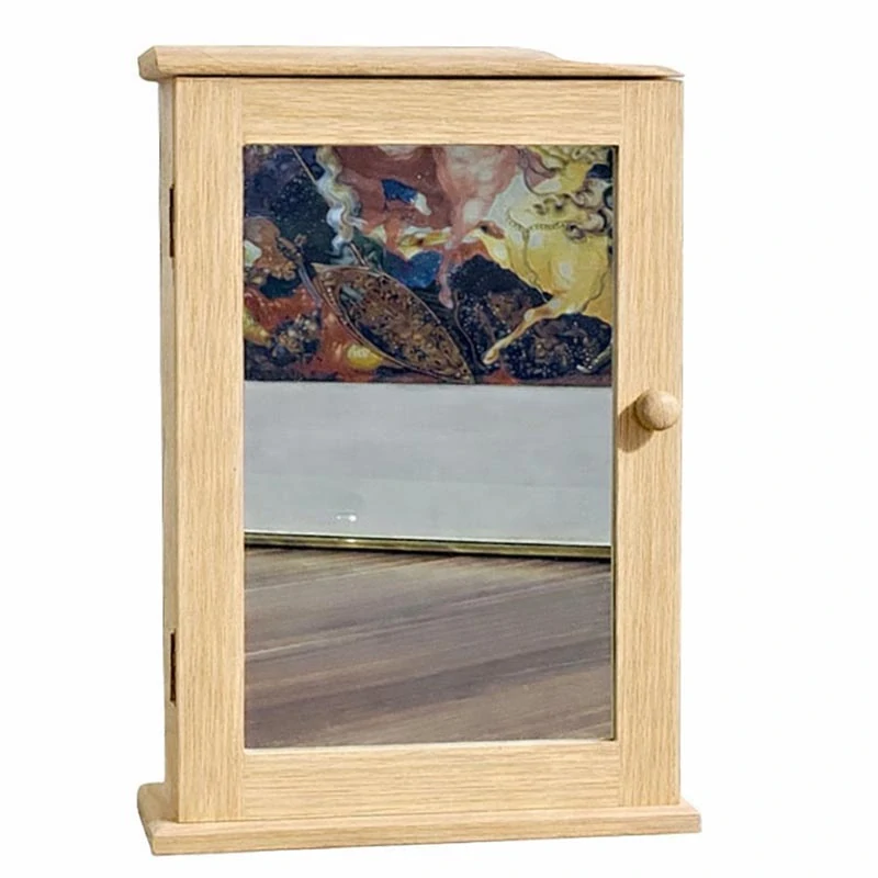 Skrinka na kľúče so zrkadlom – prírodné drevo, 27,5 × 19 × 7 cm