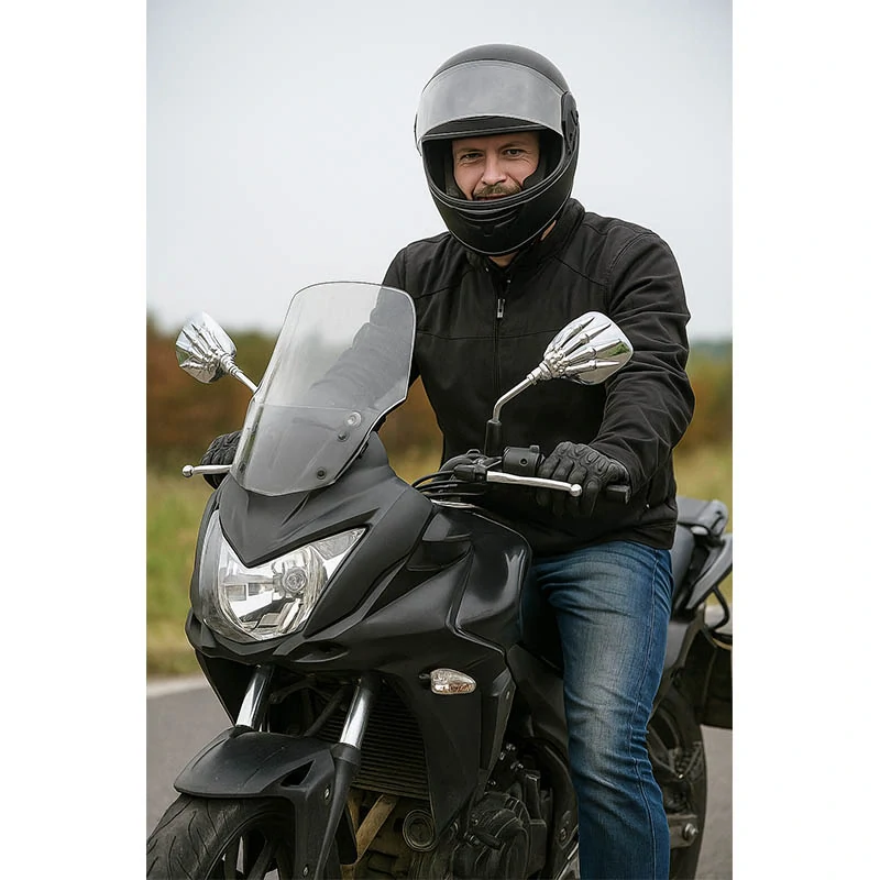 Kvalitné spätné zrkadlo určené pre motocykle, skútre a štvorkolky. Vďaka univerzálnemu závitu je vhodné pre širokú škálu vozidiel. Zrkadlová plocha s rozmermi 10 × 7 cm poskytuje jasný a dostatočne široký výhľad dozadu, čím zvyšuje bezpečnosť počas jazdy.