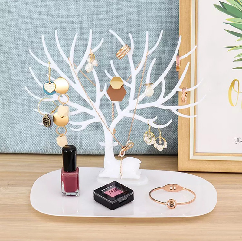 Praktický stojan na šperky v tvare stromčeka. Stojan nepostrádateľný pre každú ženu, ktorá chce upratať svoju zbierku náramkov, hodiniek a iných šperkov a vystaviť ich estetickým spôsobom. Skvele sa bude hodiť aj na všetky vitríny a výklady, v klenotníctve alebo v záložni. Vďaka výbave s mnohými rúčkami (konármi) a veľkým stojanom naň môžete položiť ešte viac hodiniek či šperkov.