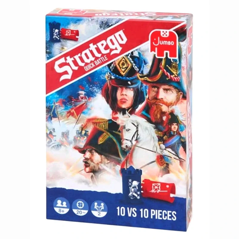 Stratego Quick Battle je kompaktná verzia svetoznámej strategickej hry, ktorá prináša napätie, logiku a taktické rozhodovanie v kratšom hernom čase. Táto verzia je ideálna pre tých, ktorí si chcú užiť súboj inteligencie, no nemajú hodiny času – partia trvá len približne 15 až 20 minút.