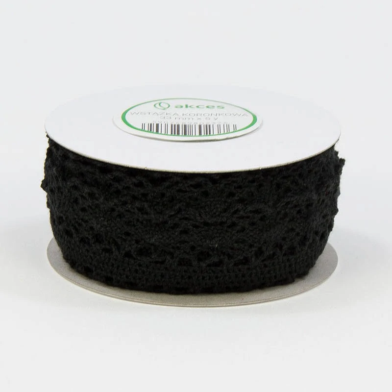 Stuha čipkovaná - 4,57m(5 yardov) x 3,3 cm : čiernaSkladom3,99 €/ ks3,24 € bez DPH