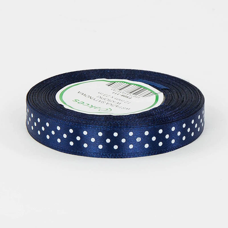 Táto nádherná saténová stuha modrej farby potlačená bodkami je ideálnym doplnkom na dekorovanie, balenie darčekov či tvorenie štýlových dekorácií. Vďaka svojej kvalite a lesklému povrchu dodá každému projektu luxusný nádych.