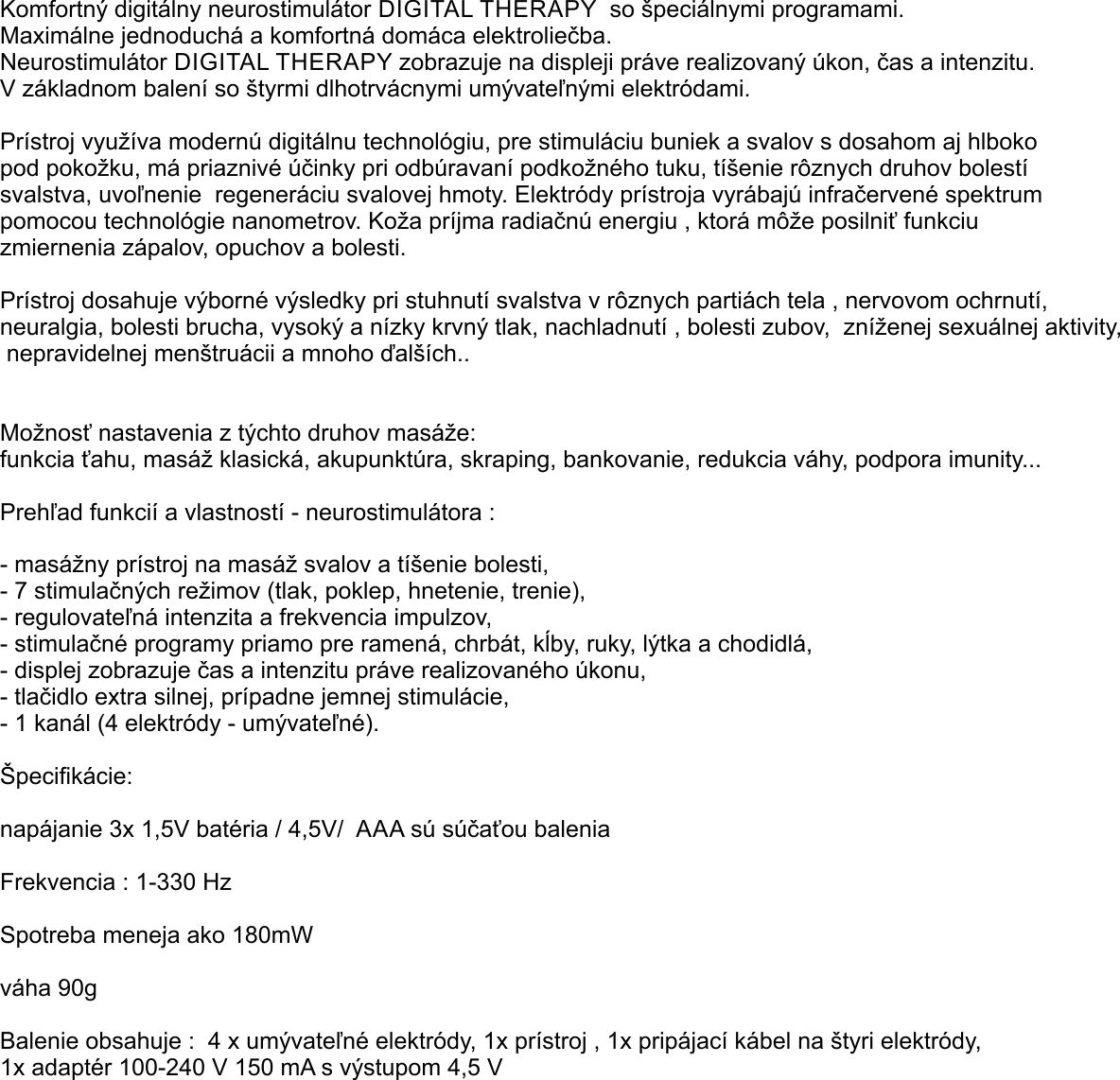 Upozornenie: Nevhodné pre osoby s kardiostimulátorom, inzulínovou pumpou a tehotné ženy.