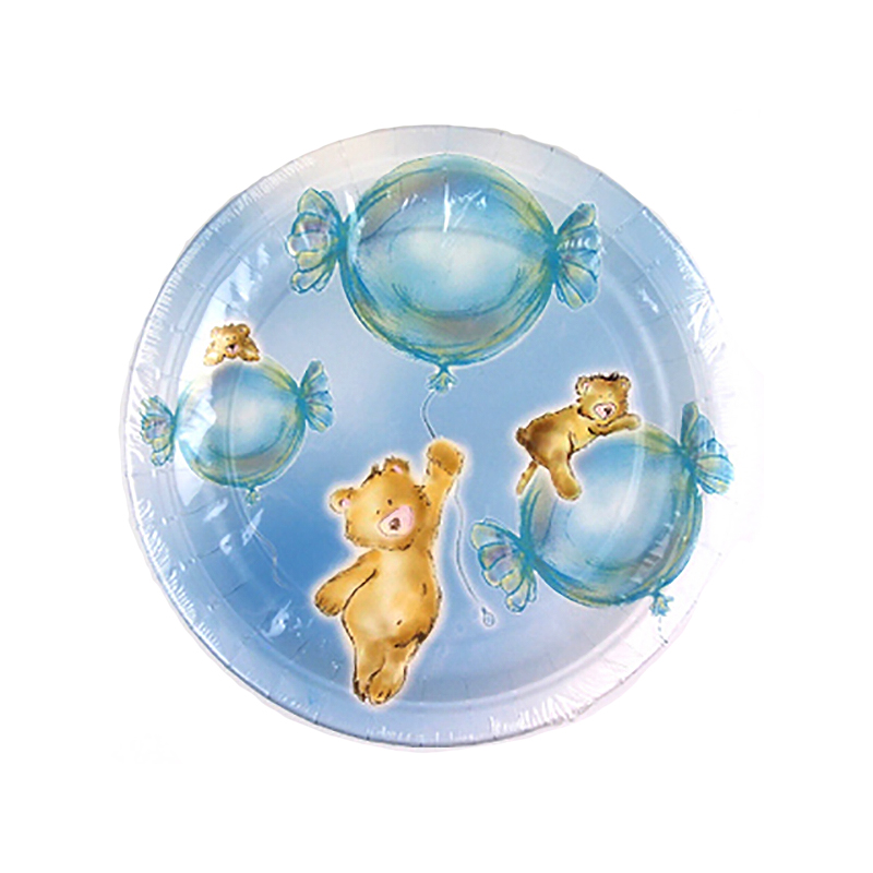 Sada 10ks papierových tanierov Sweet Blue Bear, priemer: 23 cm