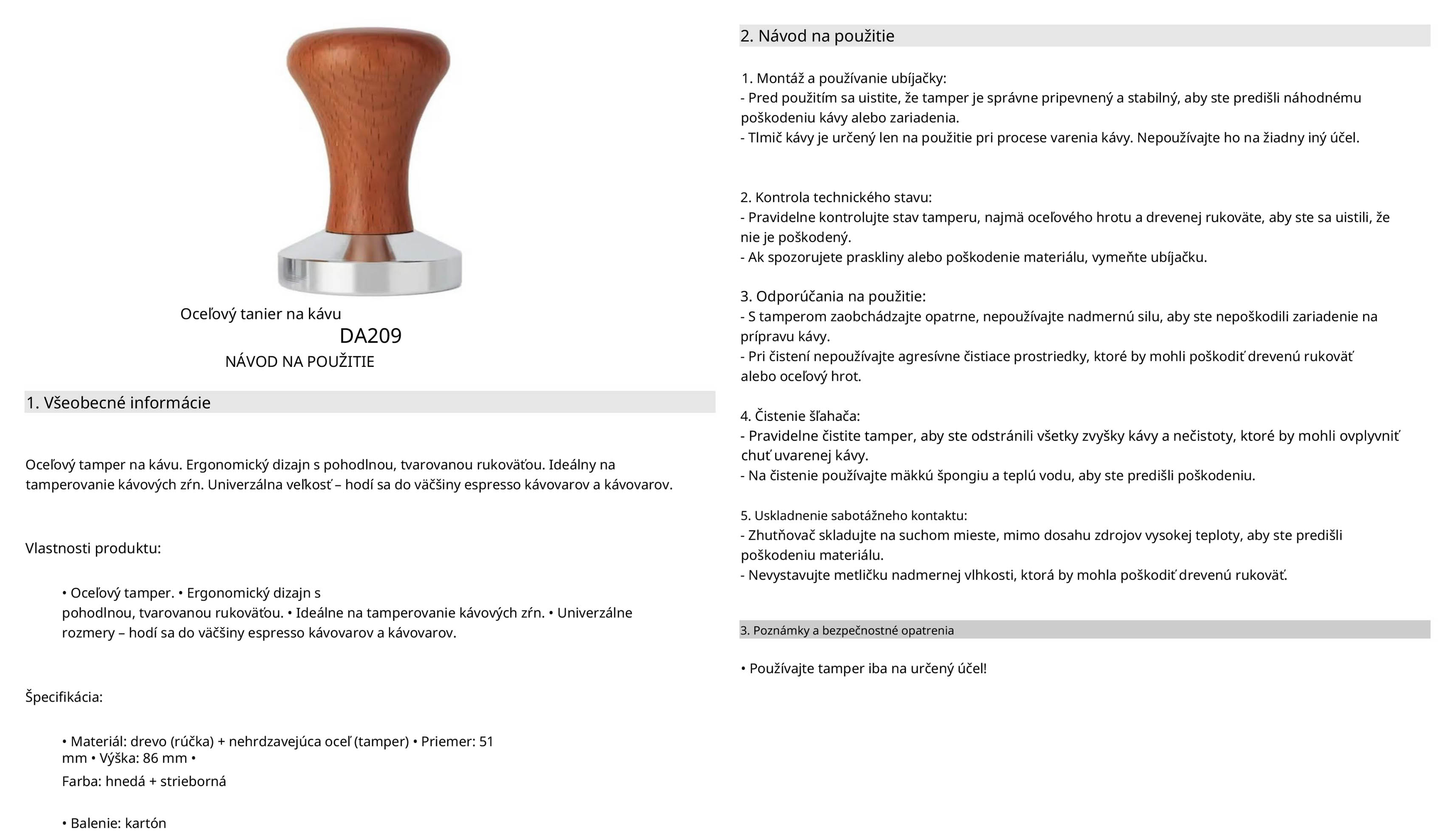 - Tamper na kávu 51mm