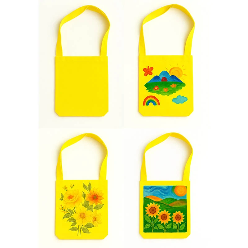 Upozornenie: Taška sa predáva čistá, žltá bez obrázkov. Obrázky sú len ako príklad a inšpirácia.