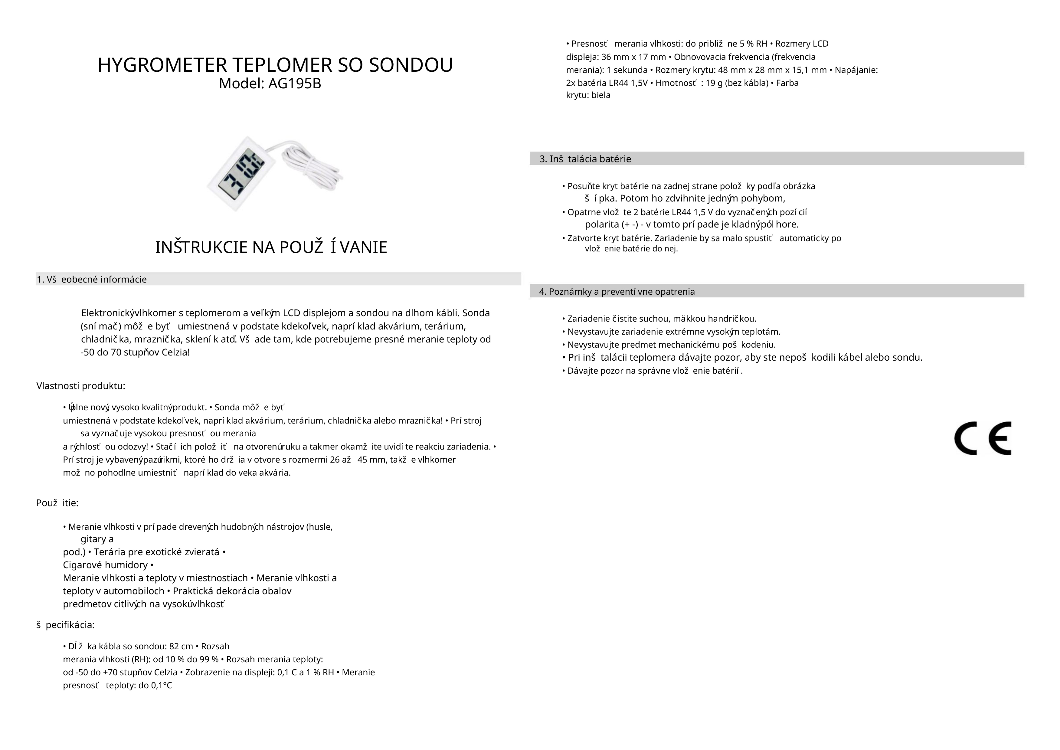 napájanie: 2× AAA batérie (nie sú súčasťou balenia)