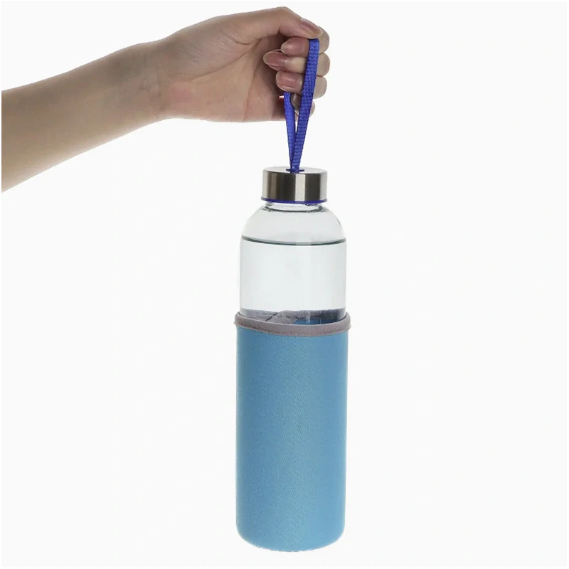 Borosilikátová termo fľaša 500 ml s neoprénovým farebným puzdrom a nepriepustným nerezovým uzáverom. Borosilikátové sklo je ľahké, vysoko priehľadné, netoxické (bez ftalátov, bez BPA alebo BPS), ľahko sa čistí, ľahko sa udržiava a ľahko recykluje.