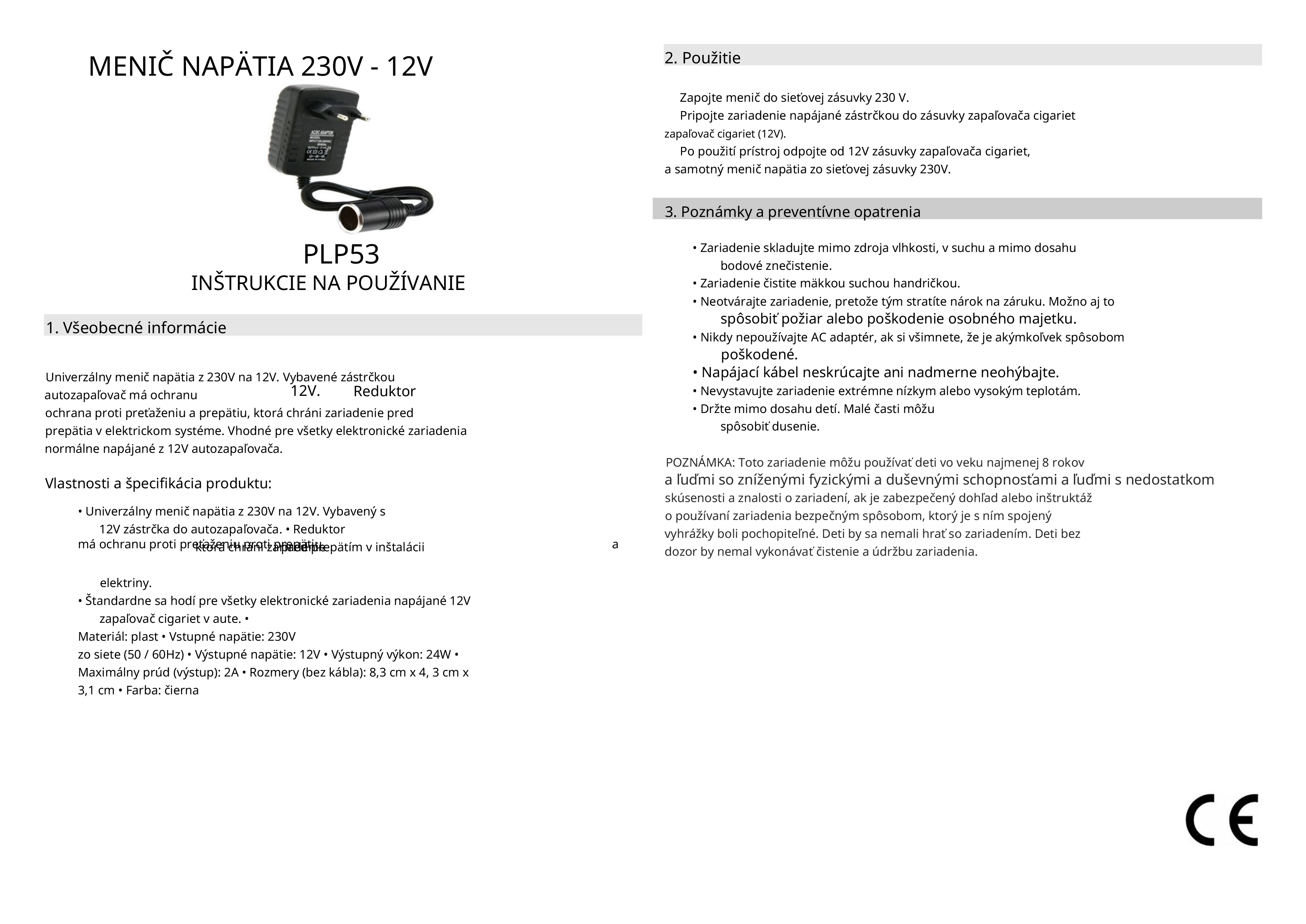 Tento univerzálny transformátor napätia z 230V na 12V je ideálny pomocník na používanie elektronických zariadení napájaných zo zásuvky autozapaľovača aj v pohodlí domova. Stačí ho zapojiť do klasickej elektrickej zásuvky a získať spoľahlivý 12V zdroj energie pre vaše obľúbené príslušenstvo.