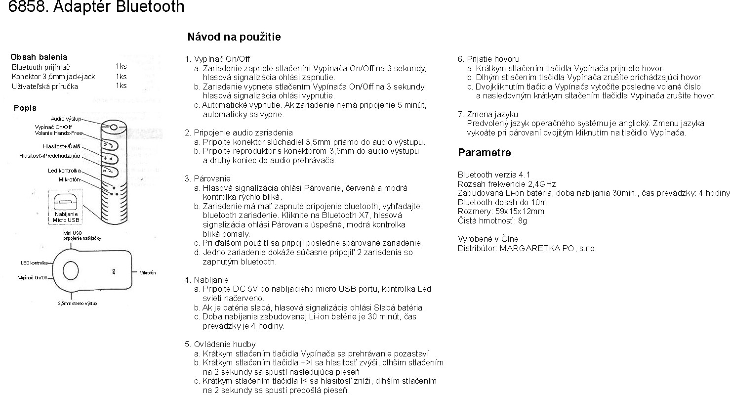 Transmitter adaptér Bluetooth AUXNie je skladom2,49 €/ ks2,02 € bez DPH