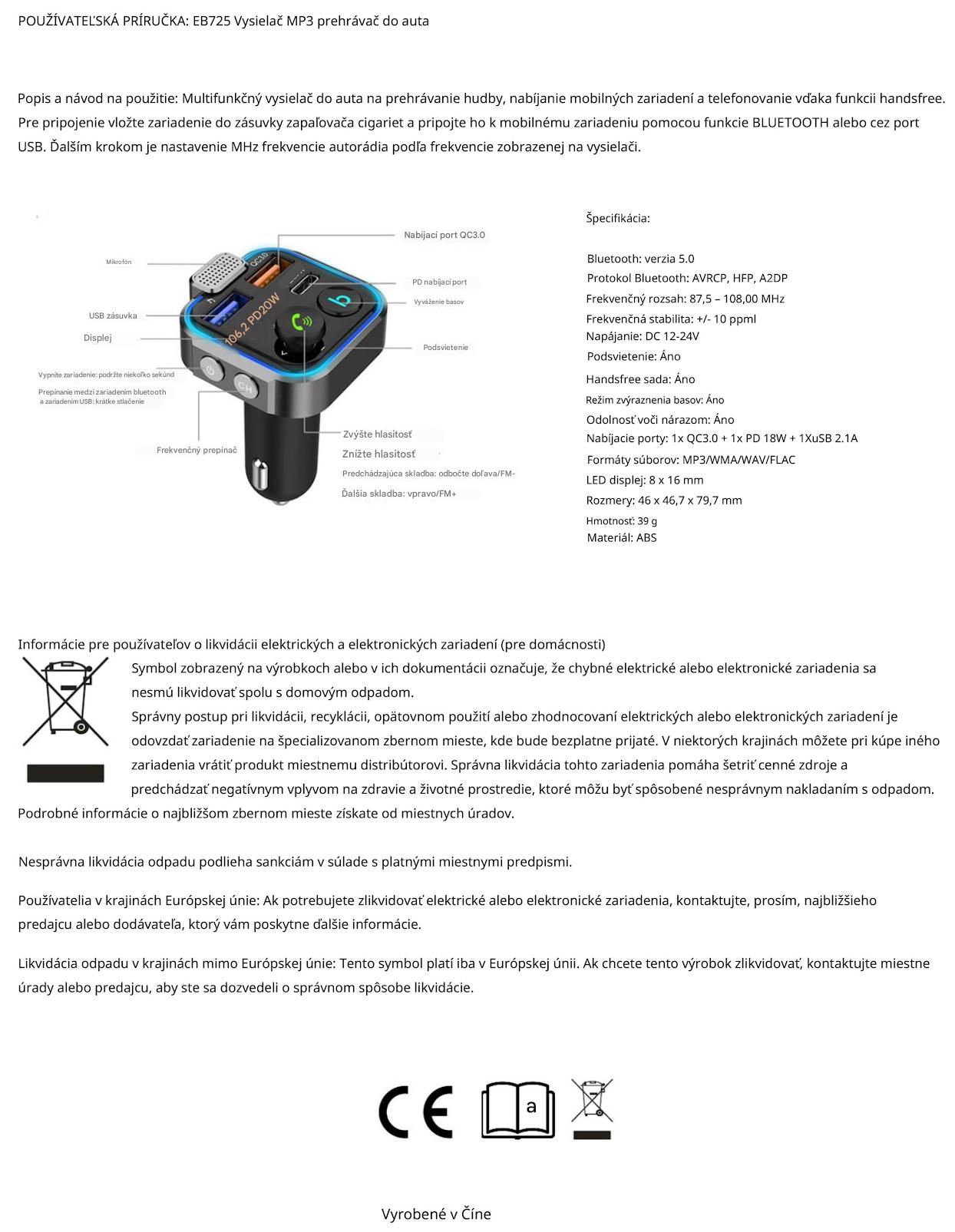 - Transmitter do auta s USB nabíjaním