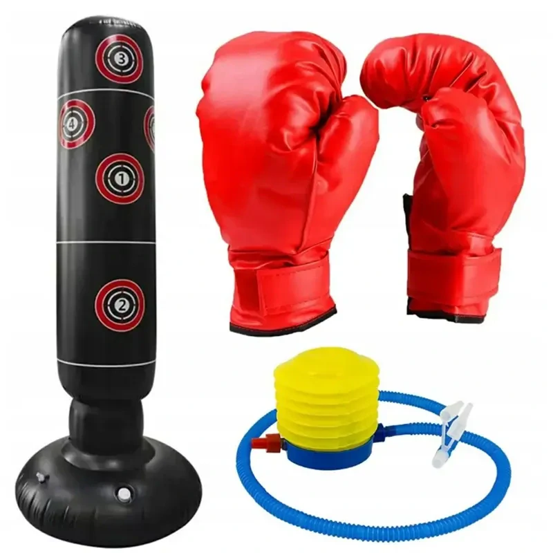 Súčasťou sady sú aj boxerské rukavice prispôsobené detským rukám a praktická pumpa na rýchle nafúknutie. Skvelý spôsob, ako deti motivovať k aktívnemu pohybu a zábavnému cvičeniu doma aj vonku.