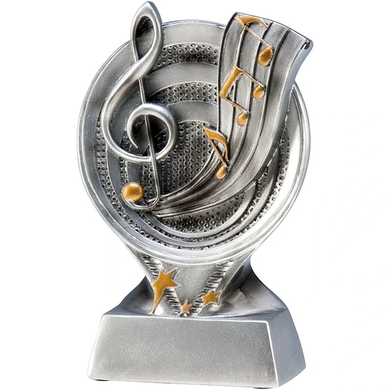 Elegantná strieborná soška, na ktorej je umiestnený zlatý husľový kľúč. Na figúrke môžete vidieť aj noty a hviezdy v zlatej farbe. Celé to pôsobí veľmi originálne a štýlovo. Sošku je možné navyše personalizovať pridaním doštičky s gravírovaním alebo farebnou potlačou. Perfektná trofej pre súťaže a hudobné podujatia.