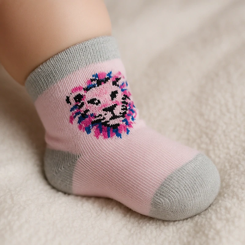 Detské bavlnené ponožky sú vyrobené z vysoko kvalitnej bavlnenej priadze. Sú veľmi príjemné na dotyk a pohodlné. Majú ploché švy s nesťahujúcim a protisklzovým lemom. Pevne držia a zároveň sa nezarezávajú do pokožky.