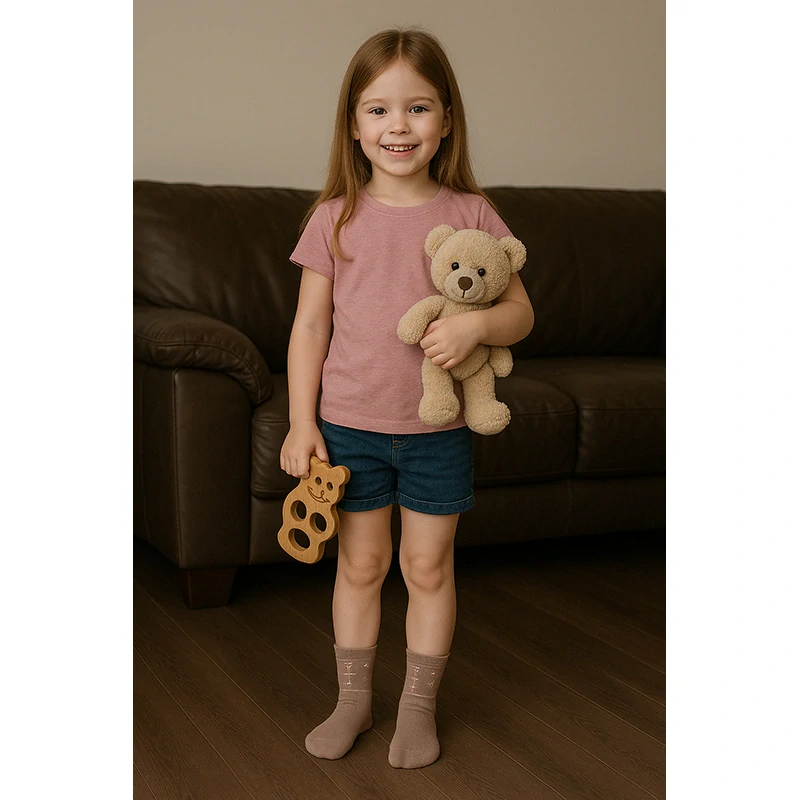 Detské bavlnené ponožky sú vyrobené z vysoko kvalitnej bavlnenej priadze. Sú veľmi príjemné na dotyk a pohodlné. Majú ploché švy s nesťahujúcim a protisklzovým lemom. Pevne držia a zároveň sa nezarezávajú do pokožky.
