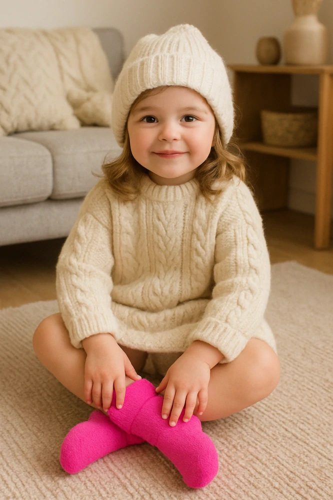 Detské froté bavlnené ponožky - hrubé, sú vyrobené z vysoko kvalitnej bavlnenej priadze. Sú veľmi príjemné na dotyk a pohodlné. Majú ploché švy s nesťahujúcim a protisklzovým lemom. Pevne držia a zároveň sa nezarezávajú do pokožky.