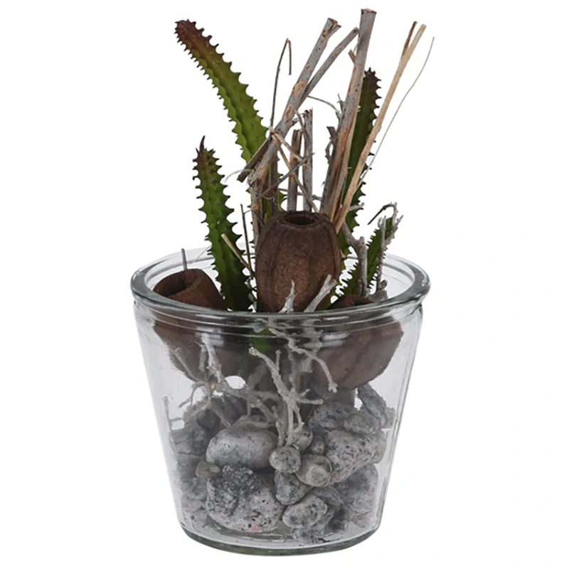 Dekoračný kaktus v sklenenom kvetináči 10×10 cm – umelá rastlina pre moderný interiér