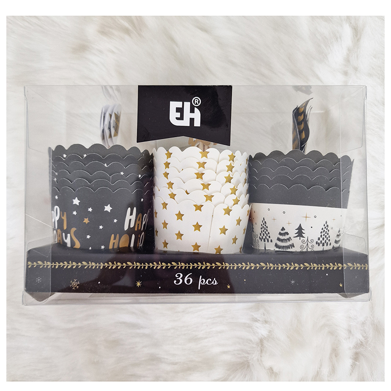 Papierové košíky na muffiny alebo šuhajdy vo sviatočnom dizajnovom prevedení. Sú ideálne na pečenie muffinov a cupcakov a sú vyrobené z extra pevného papiera.