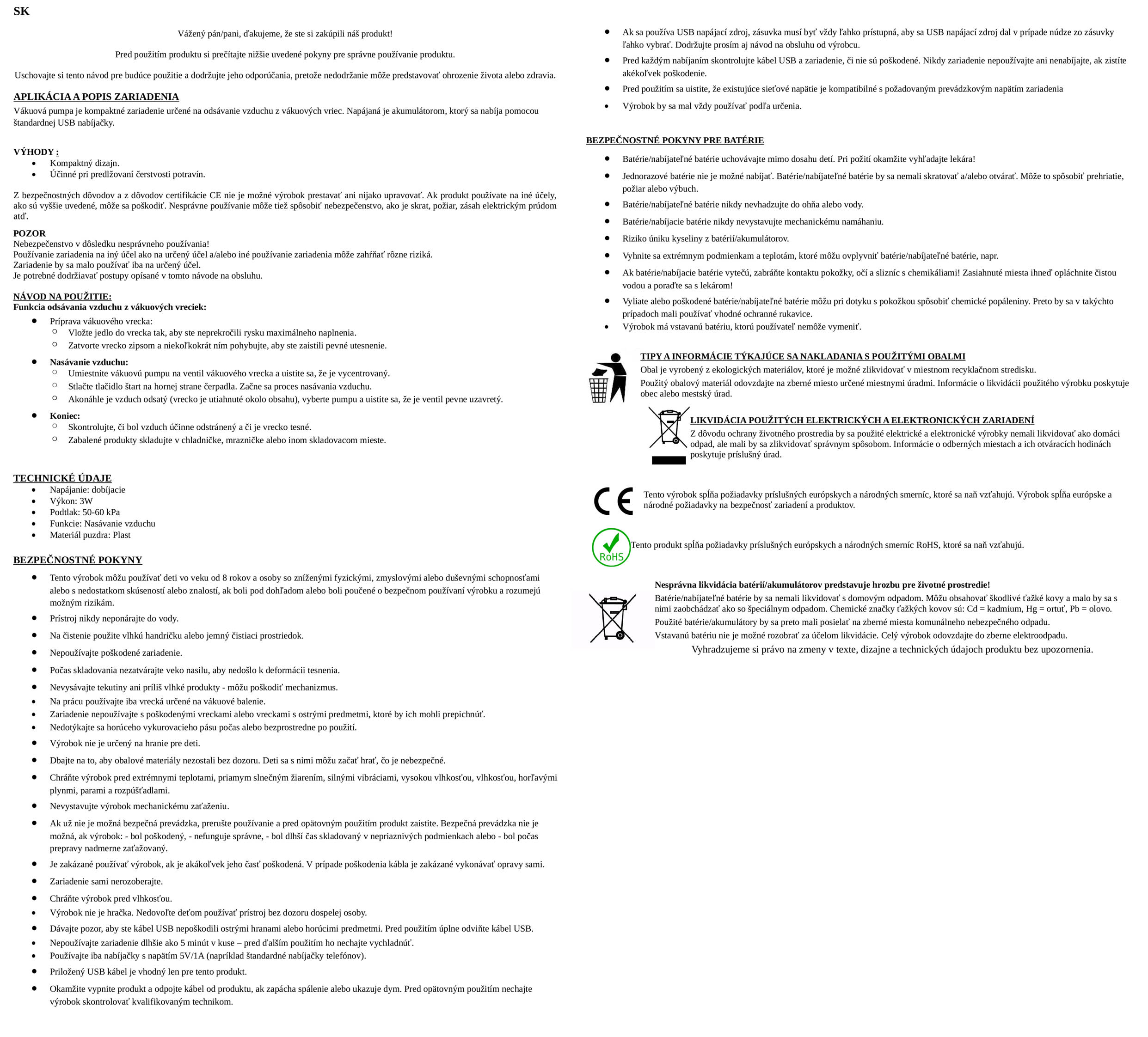 - Vákuová pumpa na balenie potravín