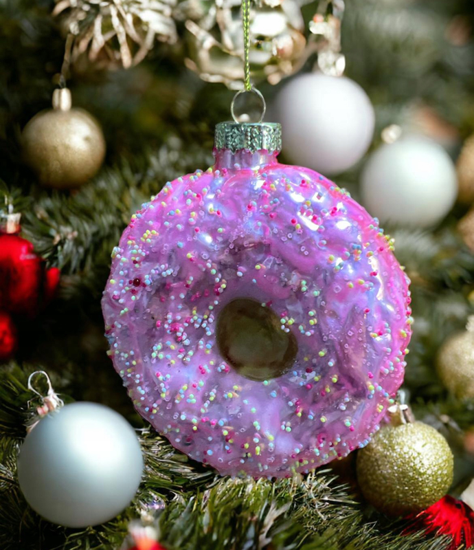 Ozdobná sklenená dekorácia na vianočný stromček - sladký donut posypaný.