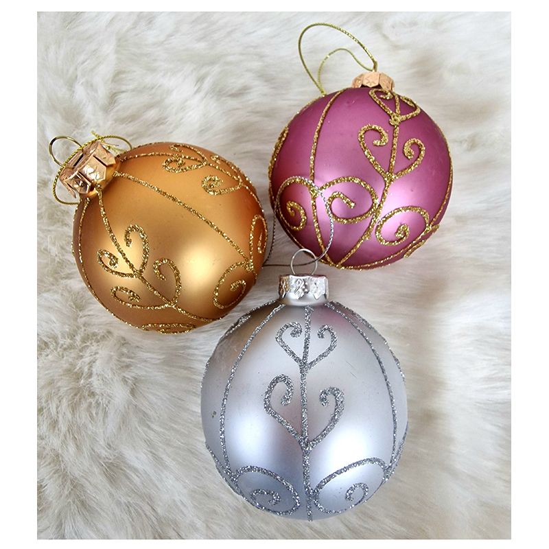 Nádherná Vianočná guľa v retro štýle. ktorá vynikne na každom vianočnom stromčeku. Priemer gule je 7,5cm.