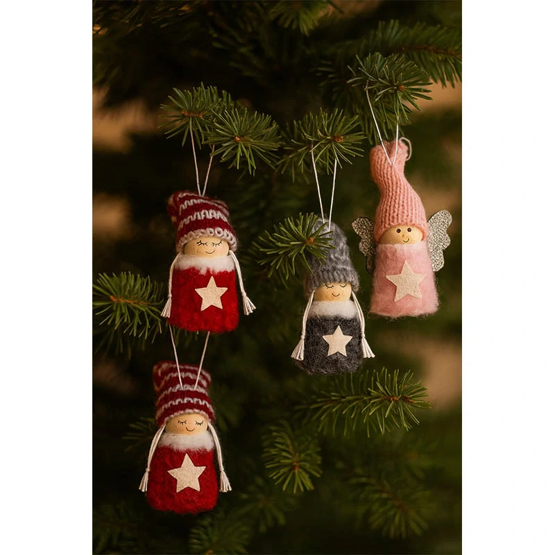 Tieto roztomilé vianočné ozdoby v podobe malých bábik s pletenými čiapkami a hviezdičkou okamžite premenia váš stromček na čarovné miesto. S ich veselými úsmevmi, mäkkým chlpáčikom namiesto tela a jemnými detailmi prinesú do vašej domácnosti tú pravú sviatočnú atmosféru.
