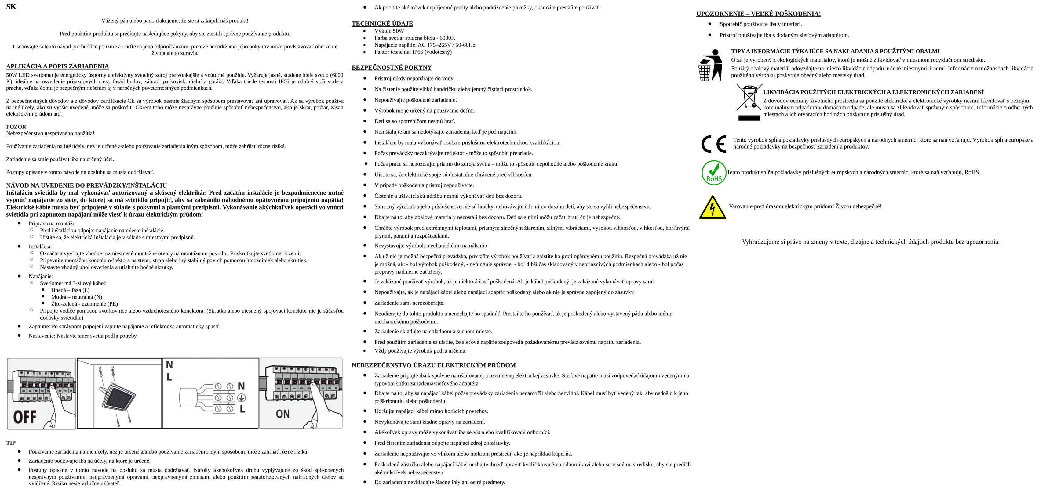 - Certifikácia: CE a RoHS