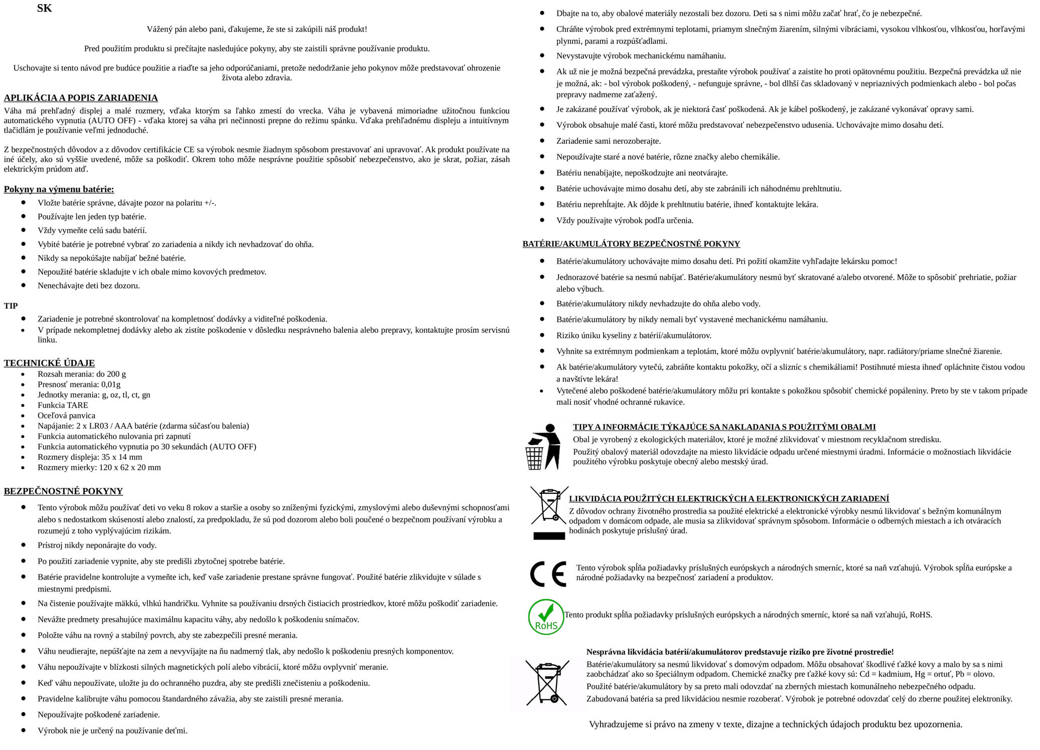 Funkcie: automatické nulovanie, funkcia TARE, AUTO OFF po 30 s