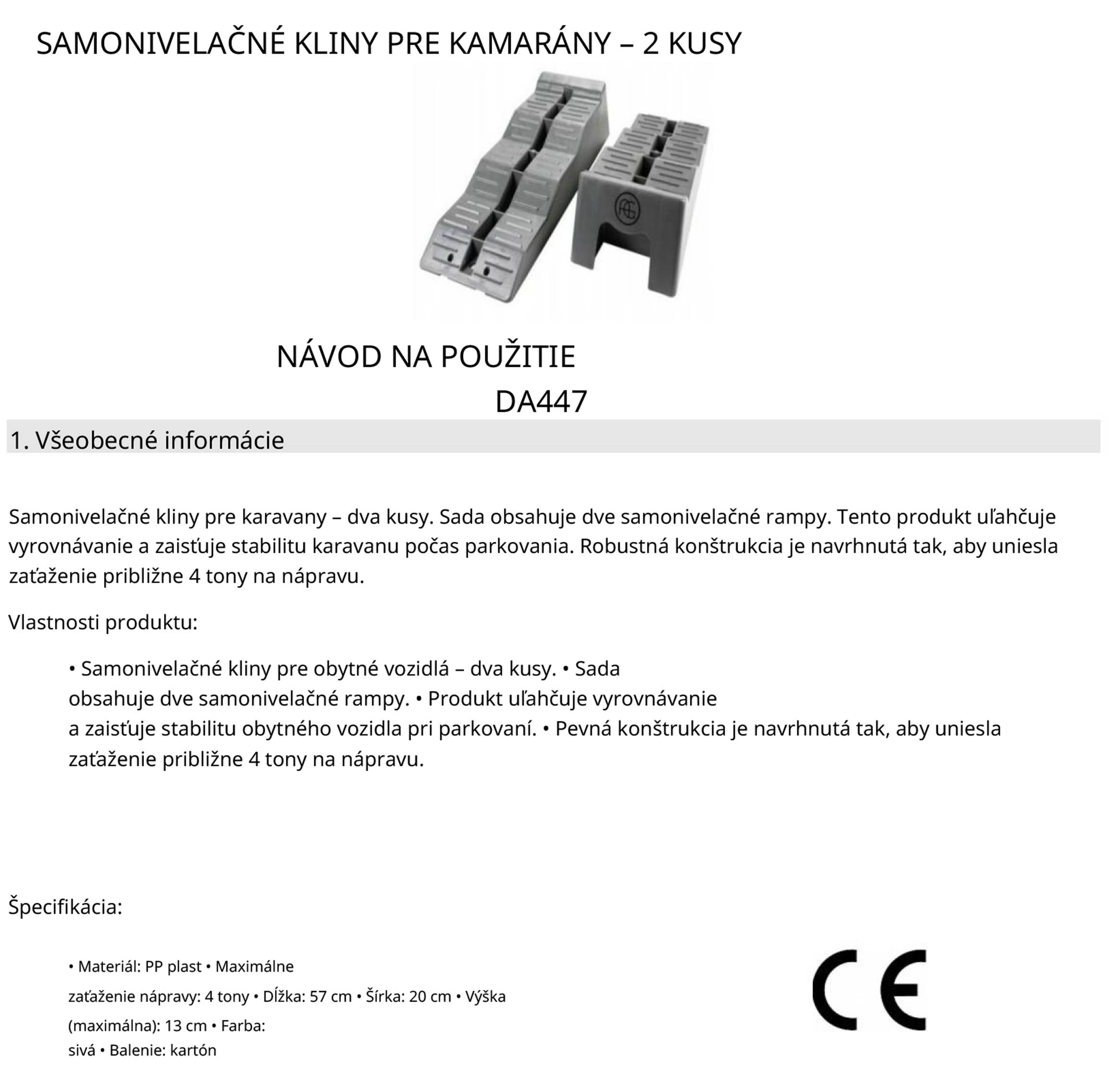 Vyrovnávacie kliny pod kolesá karavanu 2ksSkladom39,90 €/ ks32,44 € bez DPH