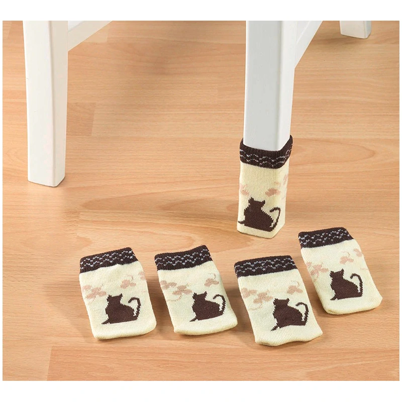 Ponožky na stoličky, 4 kusy, 5 x 9 cm, motív mačky, WENKO