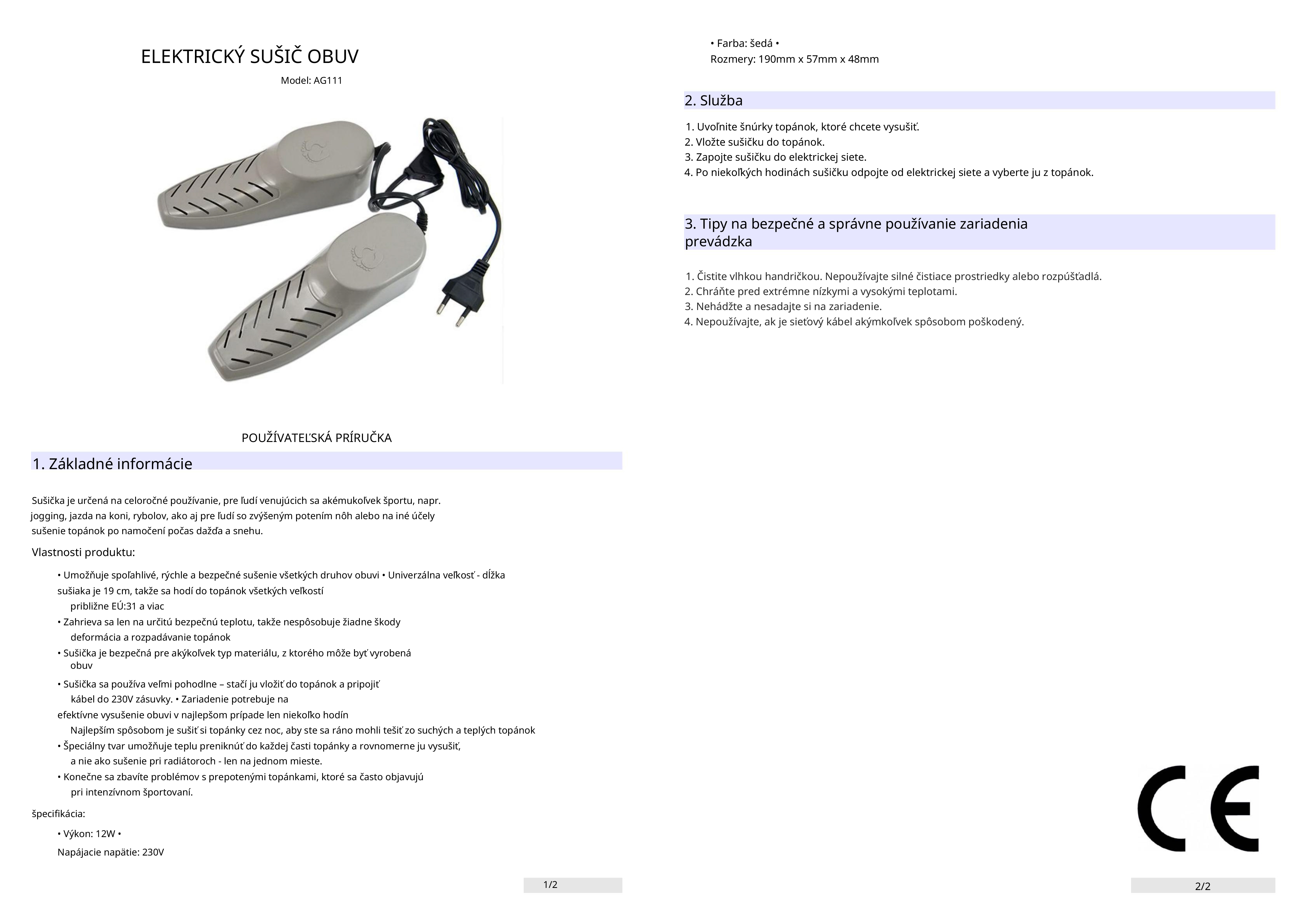 Sušič sa používa veľmi pohodlne - stačí ho vložiť do topánok a zapojiť do elektrickej zásuvky 230V.