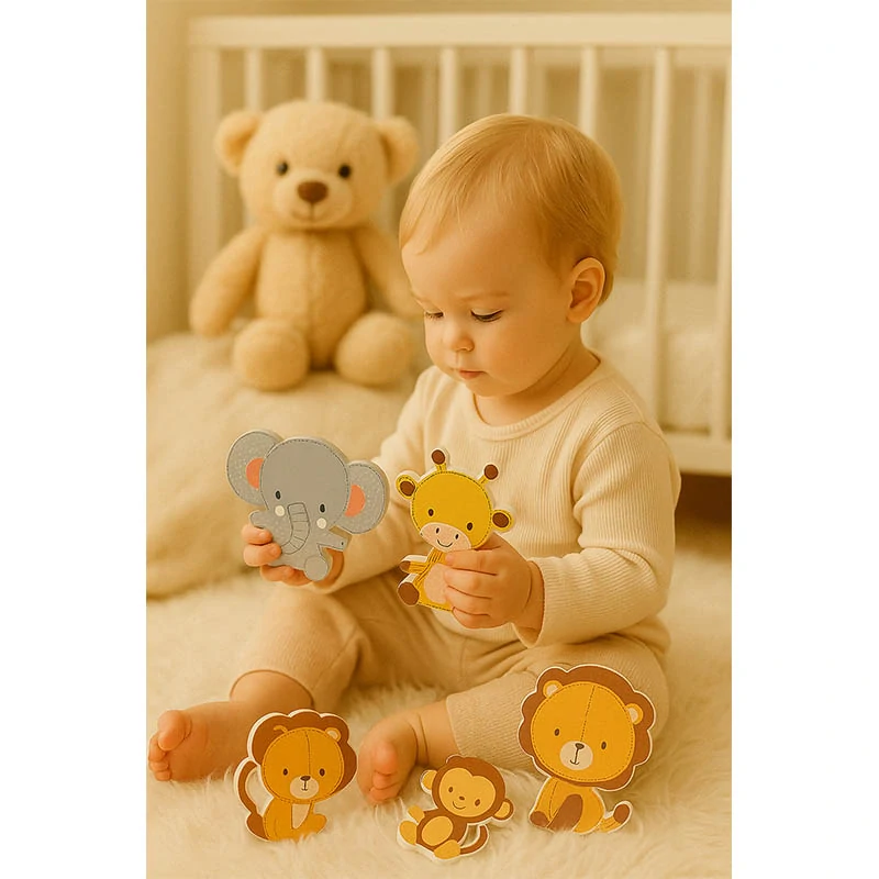 Rozžiarte detskú izbu týmito roztomilými drevenými figúrkami zvieratiek! V sade nájdete 4 milé postavičky – leva, žirafu, slona a opičku – ktoré poslúžia ako hravé dekorácie alebo ako hračky na podporu fantázie.