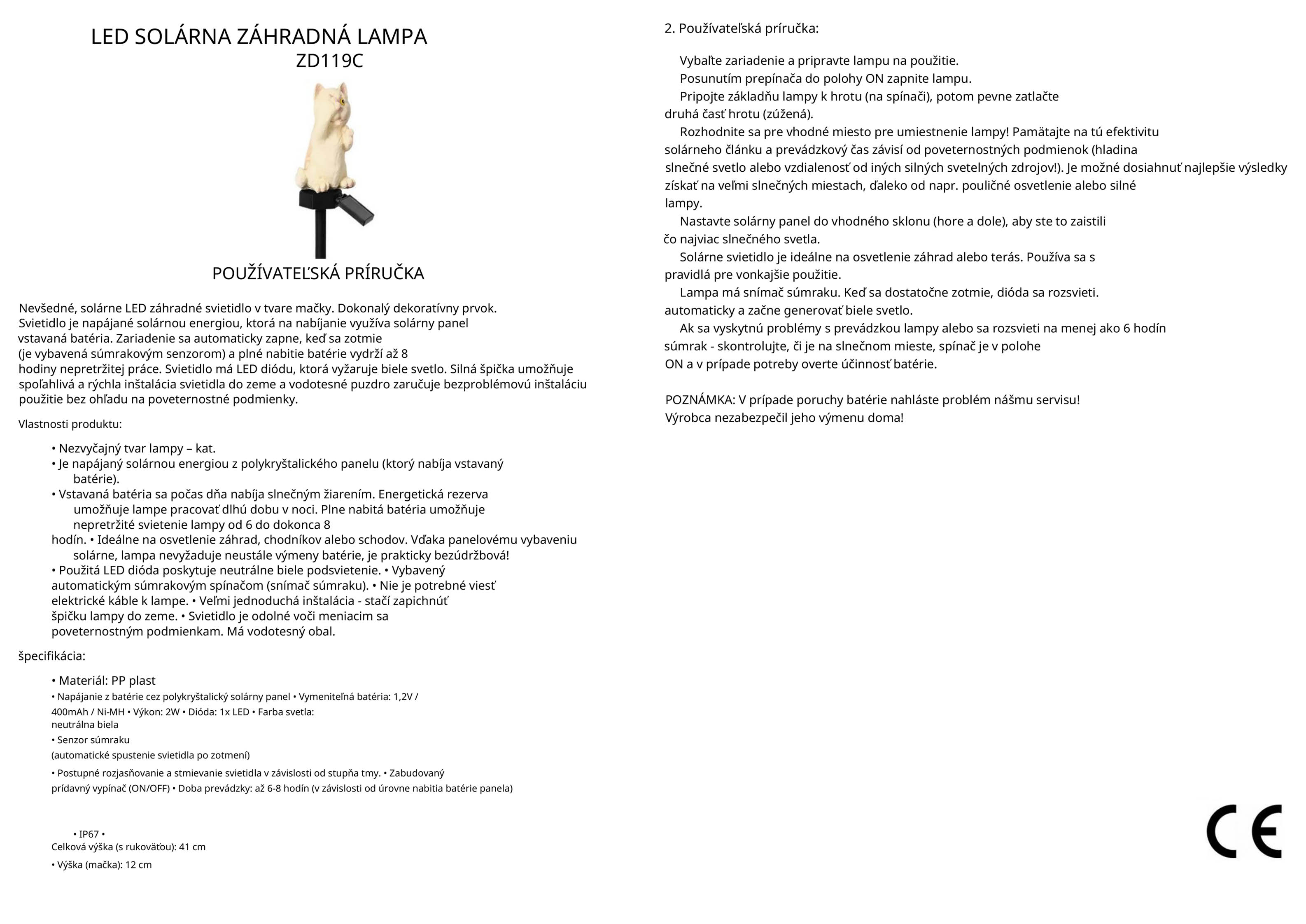 Záhradná solárna lampa MačkaNie je skladom9,99 €/ ks8,12 € bez DPH
