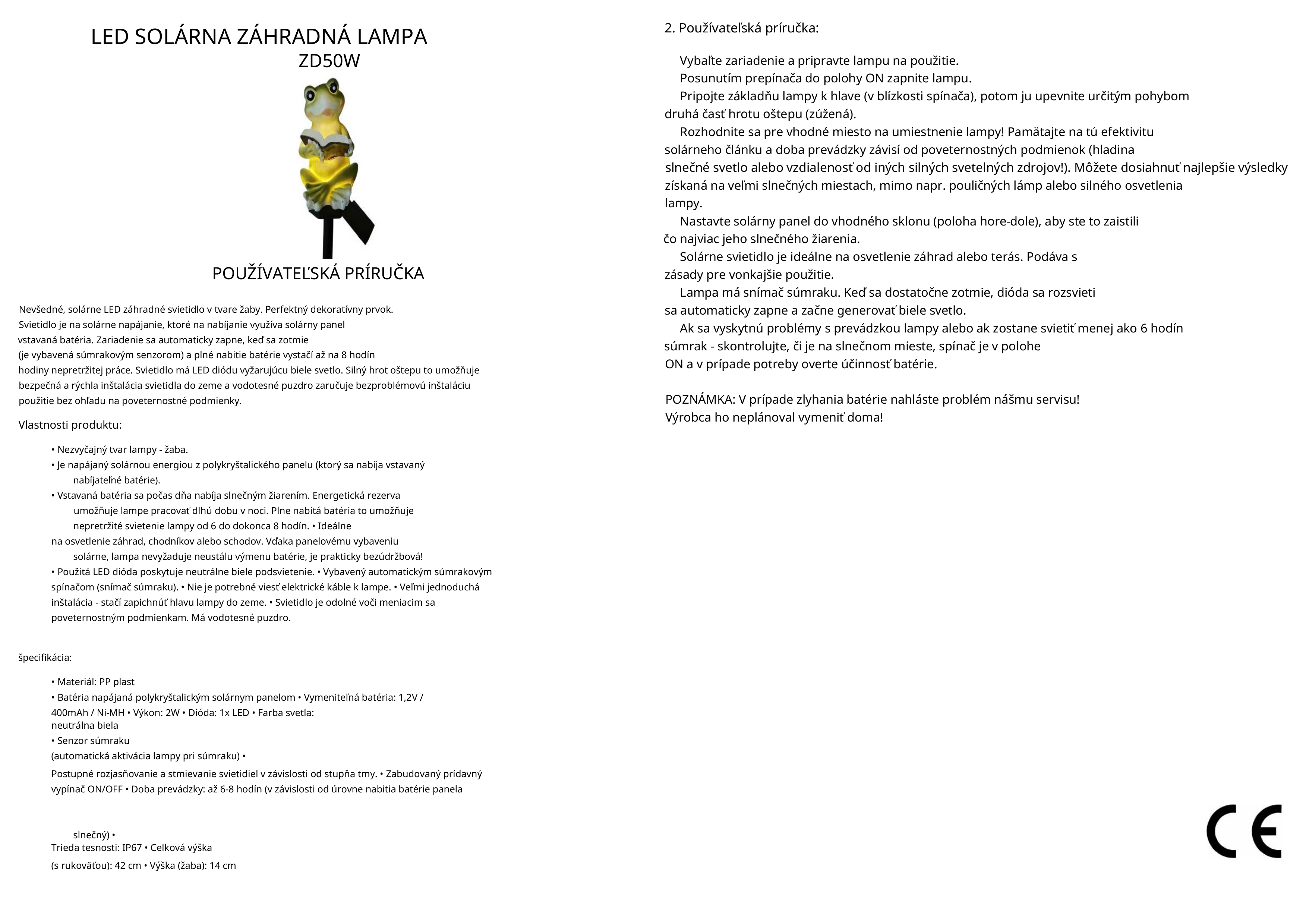 Napájanie: solárny panel + vymeniteľná batéria Ni-MH 1,2 V / 250 mAh