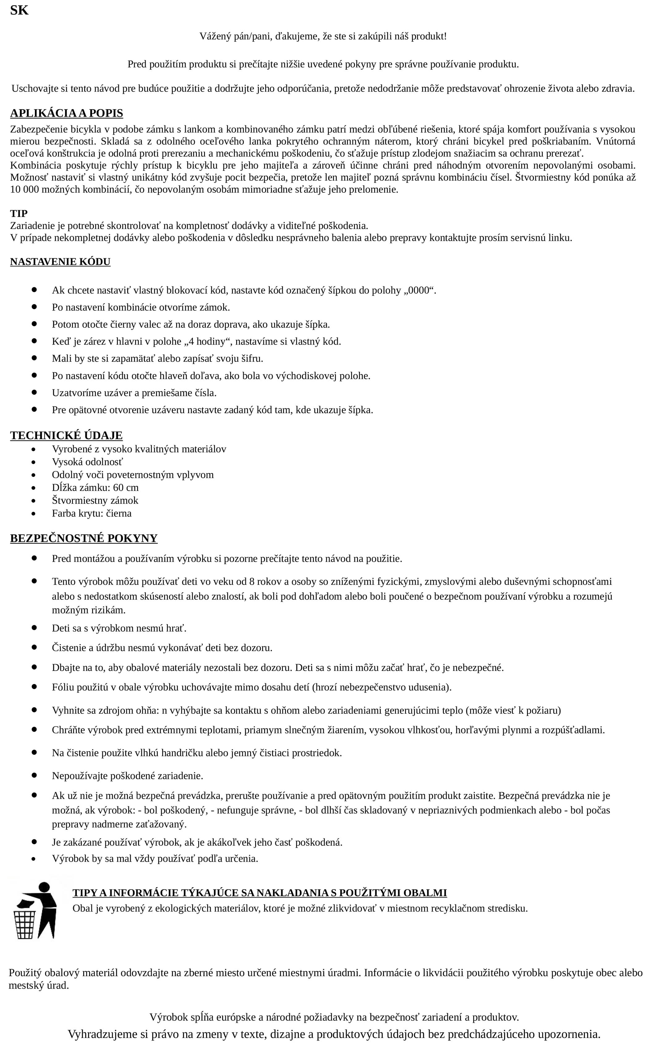 Návod na použitie zabezpečenia na bicykel s kódom