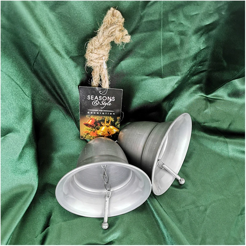 - Závesná vianočná dekorácia - Zvončeky na šnúre strieborné 14 x 12,5 x 9 cm