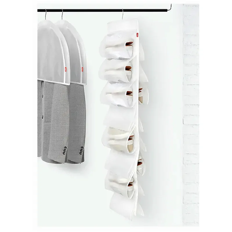 Organizér je zavesený na štandardnej skriňovej tyči s dodaným háčikom a okamžite šetrí priestor na podlahe. 18 priehľadných vinylových vreciek ľahko pojme až 9 -18 párov topánok.