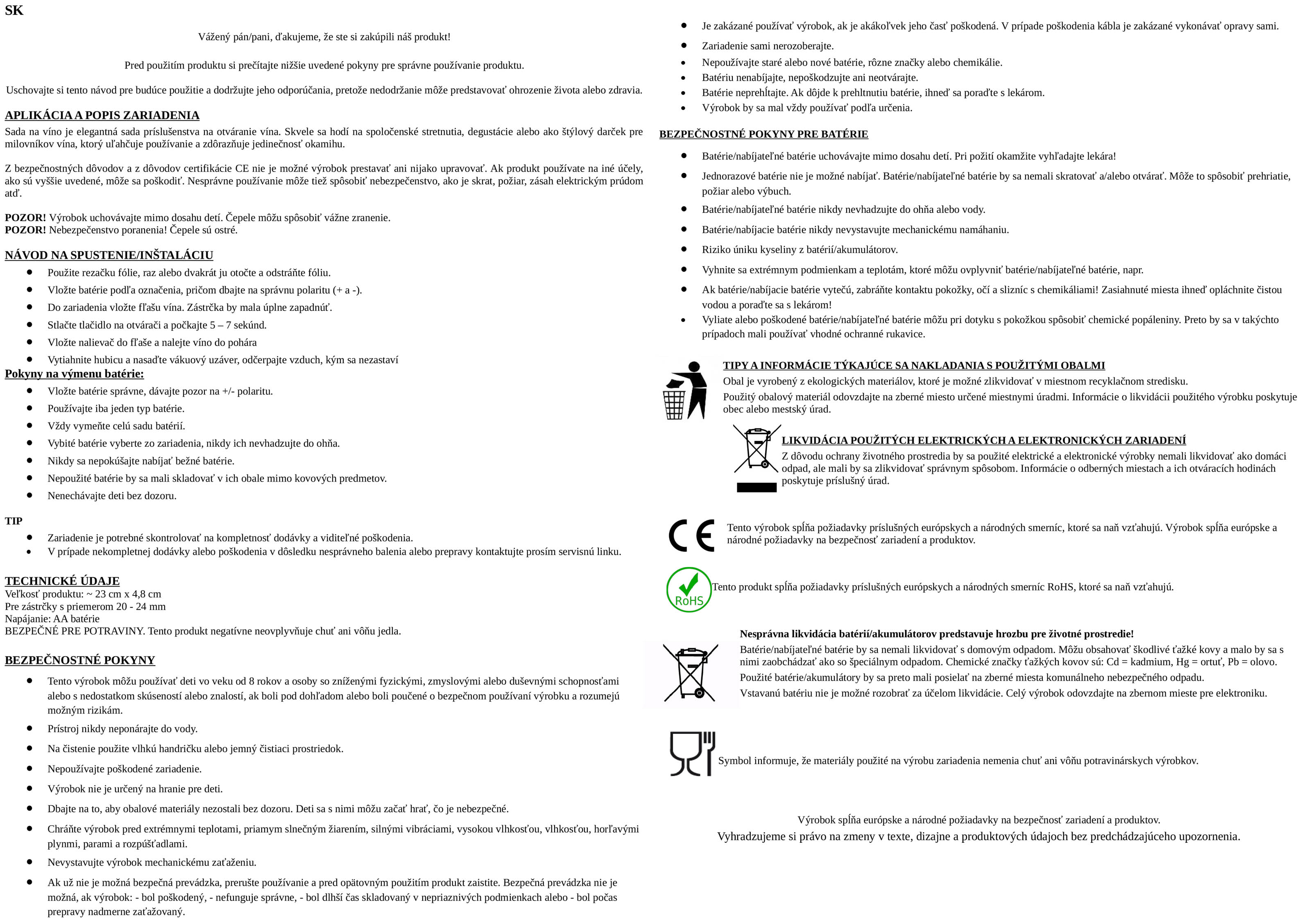 Podávanie vína – použite priložený lievik na čisté nalievanie alebo vákuovú zátku na uchovanie čerstvosti vína.