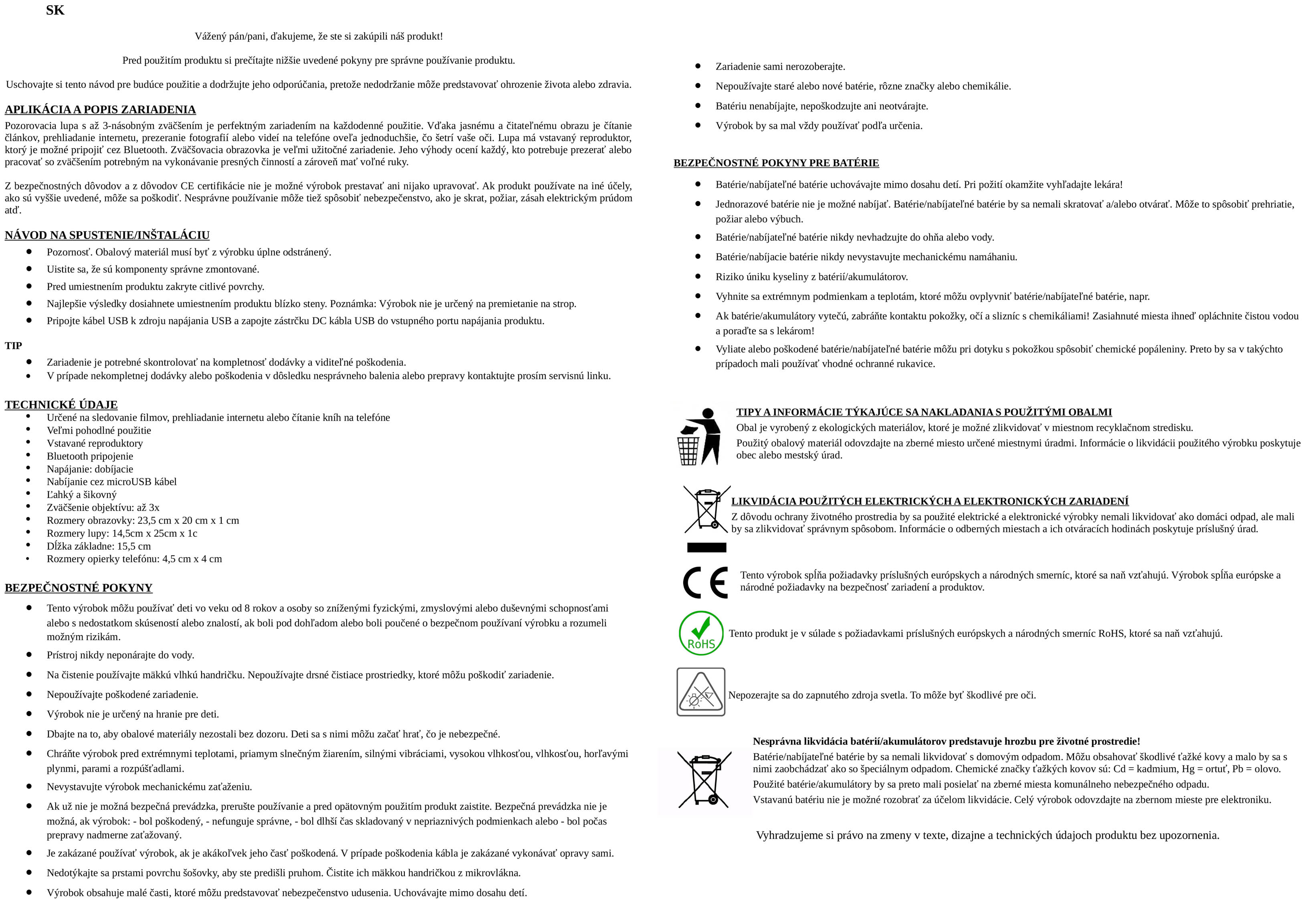 Návod na použitie lupy na mobilný telefón s Bluetooth reproduktorom